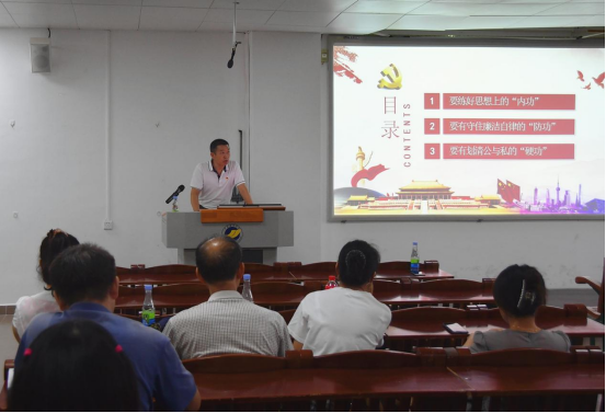 谢仕义以《练好“三功”,远离廉洁风险》为题,围绕练好思想上的“内功”、守住廉洁自律的“防功”和划清公与私的“硬功”三个方面,通过一个个鲜活的实例为在场的党员干部作出警示教育。
