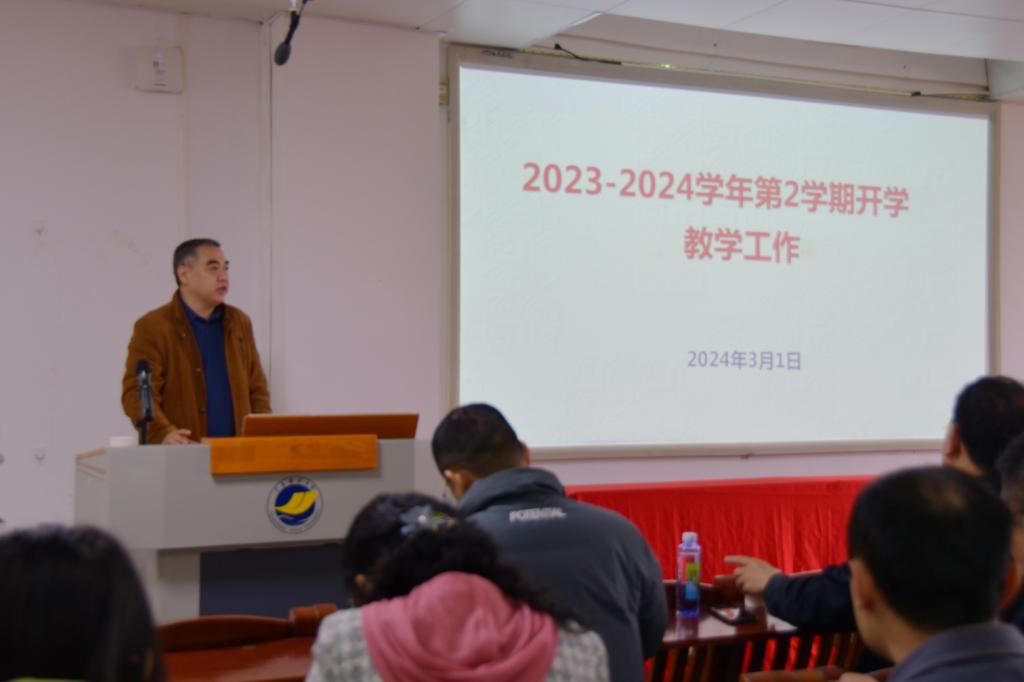 3月1日上午,学院在明德楼A座103学术报告厅召开2024年春季新学期开学工作会议。学校党委常委、副校长邓逢光出席会议并讲话。党委组织部正处级组织员兼副部长曾令梅、学院党政领导及全体教职工参加会议。会议由学院党委书记龙俊主持。