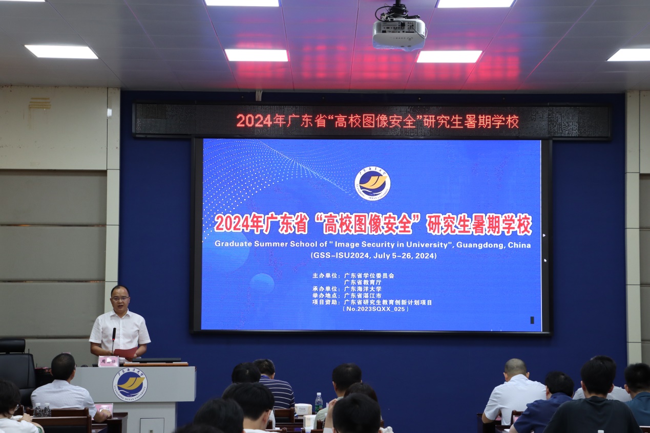 7月6日上午,由广东省学位委员会与广东省教育厅主办,广东海洋大学承办,广东海洋大学网曝吃瓜独家黑料每日吃瓜协办的广东省“高校图像安全”研究生暑期学校在广东海洋大学水生博物馆会议室顺利开幕!我校党委常委、副校长周昌仕教授出席开幕式并致辞,重庆大学二级教授廖晓峰、浙江大学李春光教授、中山大学计算机学院郑培嘉副教授分别作特邀专题报告。开幕式由研究生院院长叶国栋教授主持。