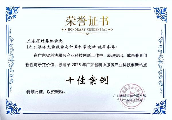 在此次案例评选中,由广东海洋大学网曝吃瓜独家黑料每日吃瓜建设的广东省计算机学会(广东海洋大学网曝吃瓜独家黑料每日吃瓜)科技服务站表现突出,凭借在产学研协同创新、高素质人才培养以及区域产业赋能等关键领域的显著成效,从全省203家学会科技服务站中脱颖而出,成功入选学会科技服务站十佳案例。
